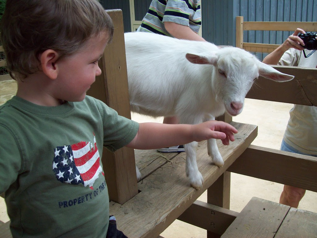 By the time we visited the zoo, Thumper had missed a couple of naps and had a late night in the hotel, so he was fairly subdued. Luckily, Grandma had the idea of renting a stroller, which saved the day. Thumper rode from exhibit to exhibit, then leaped out of the moving vehicle without warning Grandma, who was driving, to get a look at each animal. There were a couple of school groups there, so sometimes he had to fight for a spot at the glass:
